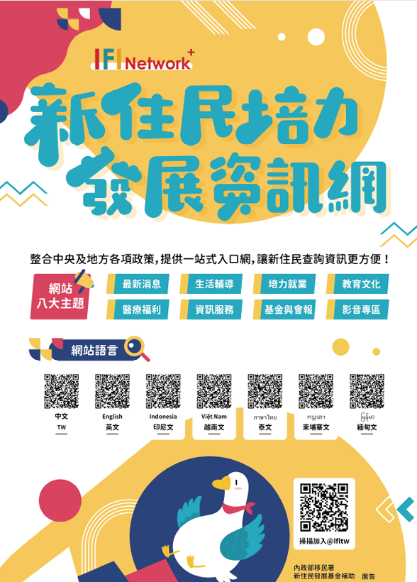內政部移民署建置7國語言之新住民培力發展資訊網站(包括中、英、越、印、泰、柬、緬),並設立LINE官方帳號(@ifitw)。
